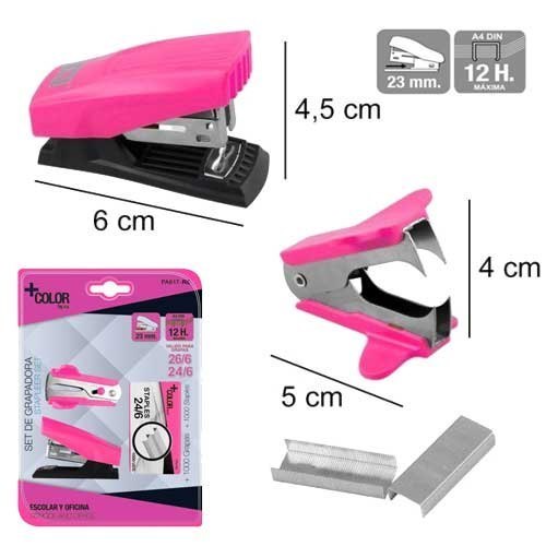Zszywacz 24/6 rozszywacz i zszywki różowy PA617-RE